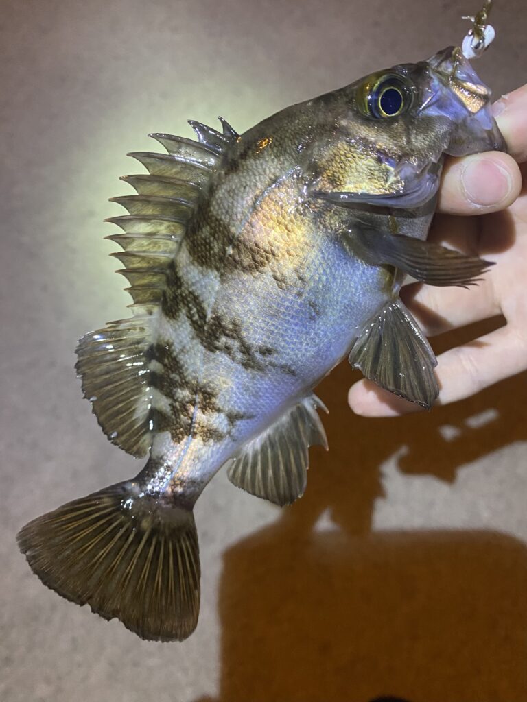 まずは明暗の境と駆け上がりの複合ポイントでメバルをゲット。