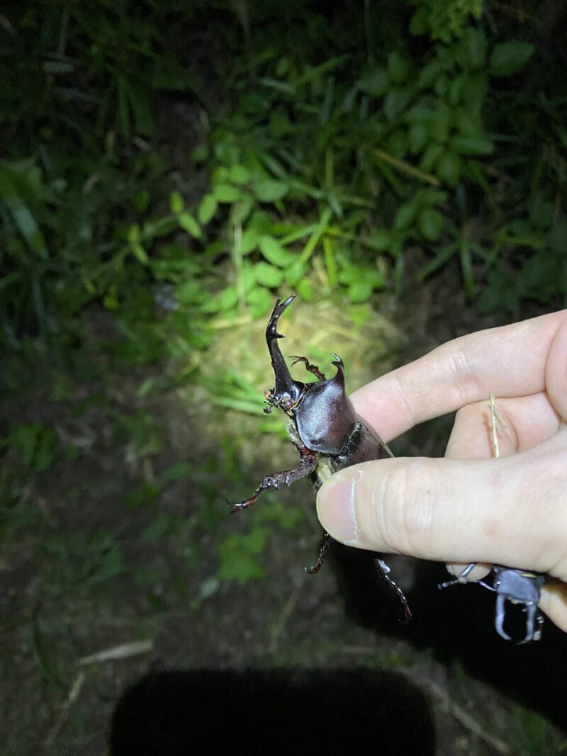 最後の木では高いところにカブトムシを発見!何とかゲットです。