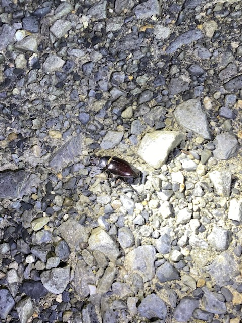 外灯下に落ちている固体、飛んでいる固体、ロードキルされた個体…カブトムシのみ驚くほど高密度で集まっていました。
