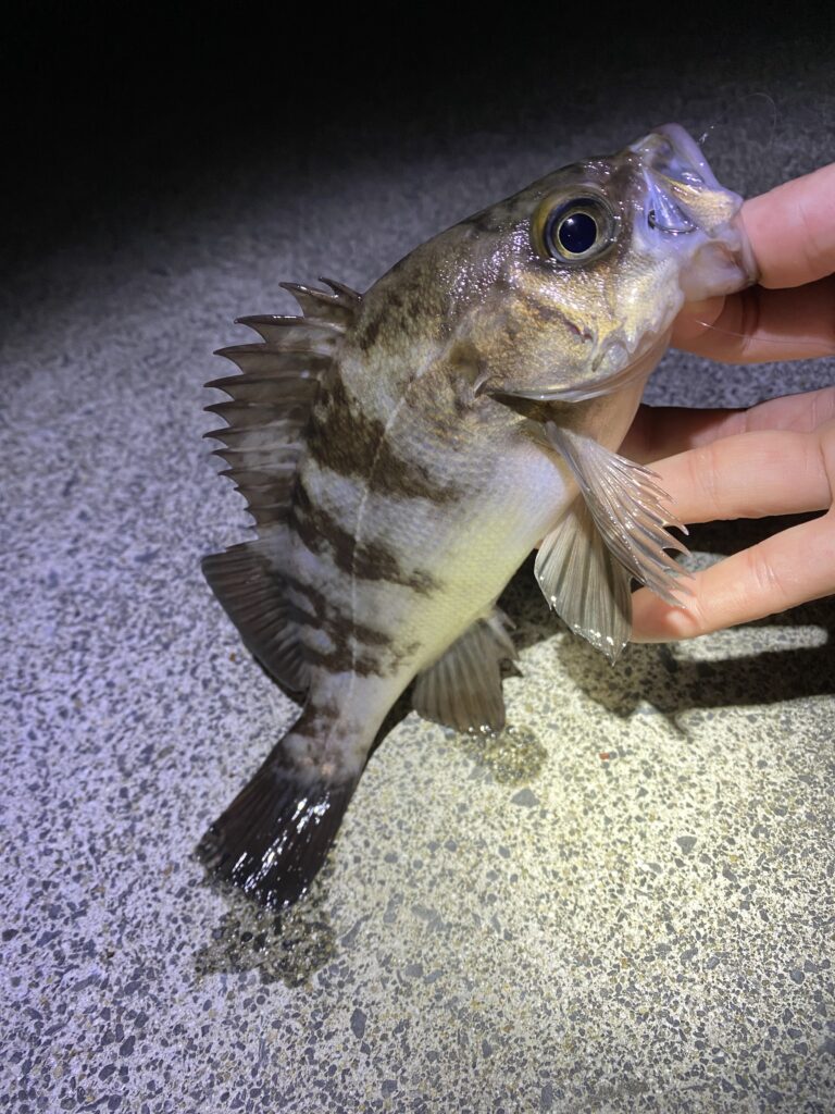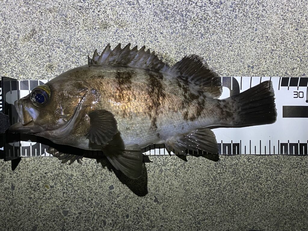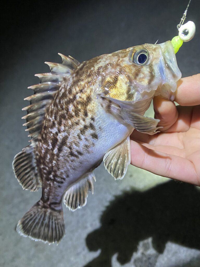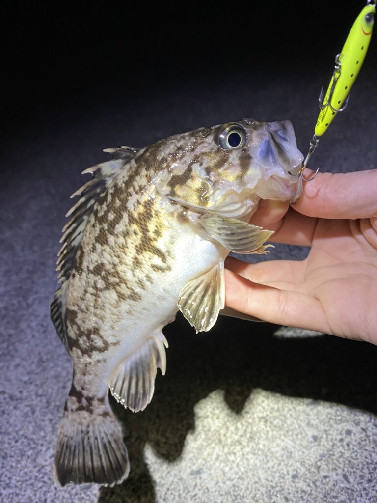 この二尾は連続で釣れましたがそれ以降は反応が無くなったため、少し移動してちびクロソイを一尾追加で納竿です。