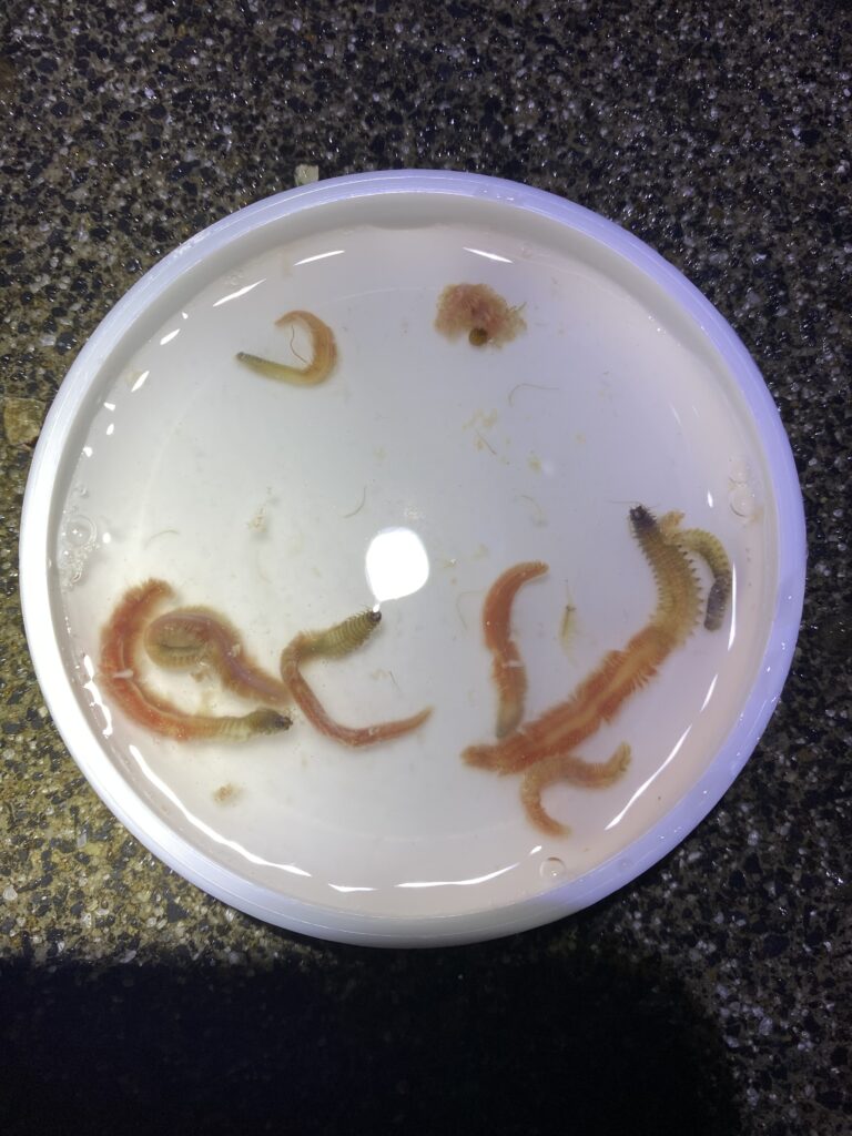 ストマックポンプを使いベイトを調べてみると、ほとんどがバチのようでした。